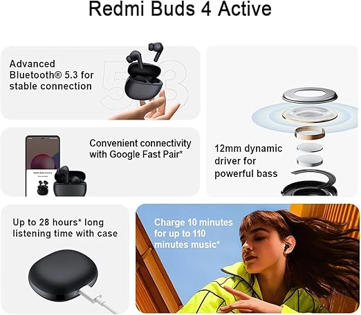 Redmi Buds 4 Active TWS Wireless Earbuds With Lightweight Design,Bluetooth 5.3 Fast Pair Connectivity & Touch Controls, ANC Noise Cancellation,... Read more