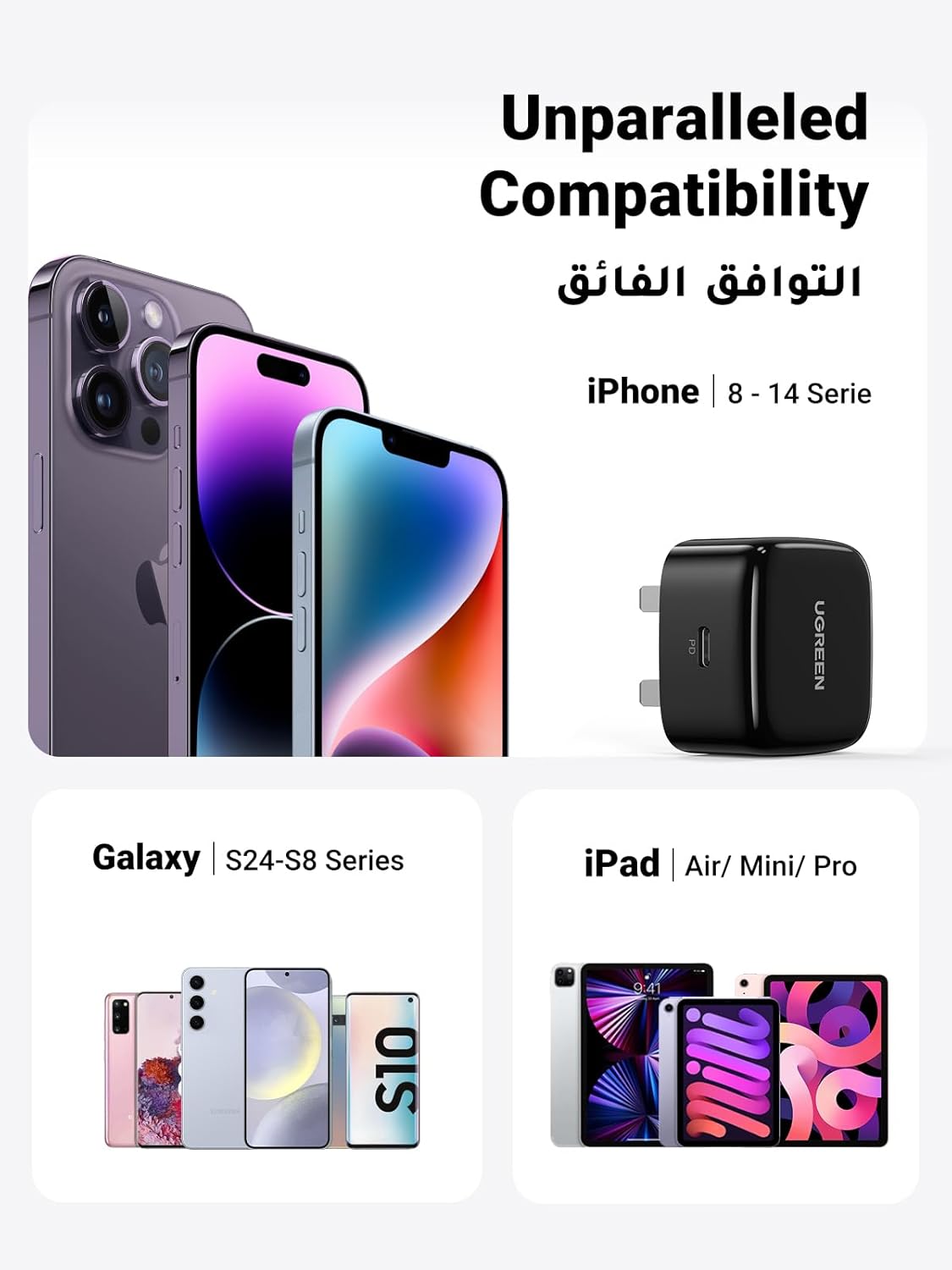 - 【What You Get】1 * UGREEN PD 20W USB C Charger, 1 * user manual, 24-month warranty, 24-hour customer service, lifetime technical support.