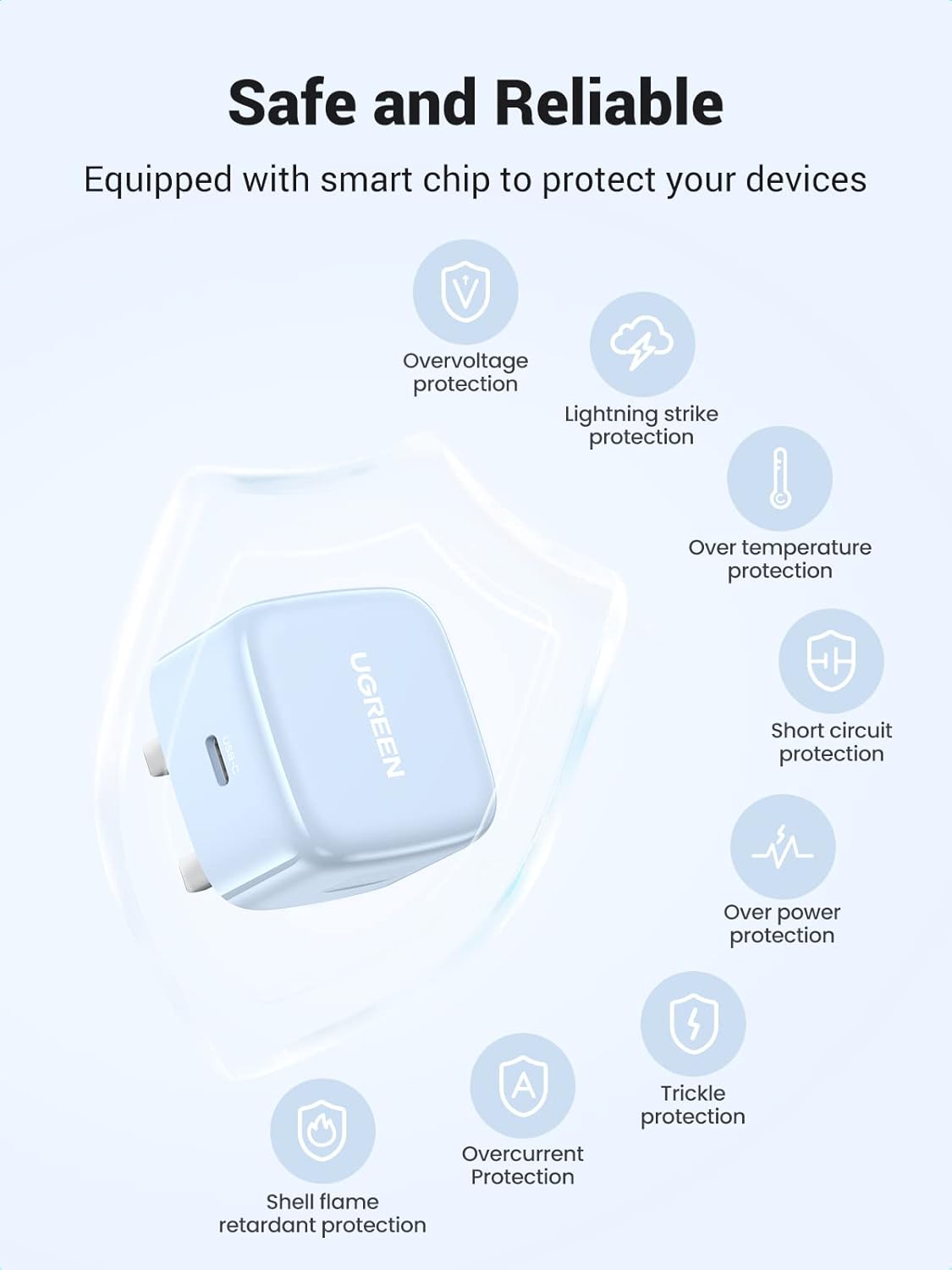 - 【What You Get】1 * UGREEN PD 20W USB C Charger, 1 * user manual, 24-month warranty, 24-hour customer service, lifetime technical support.