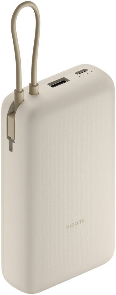 Xiaomi 33W Power Bank Integrated Cable, 20,000mAh Battery, Intelligent Current Matching, Supports USB-C Input and Output, Along With USB-A Output, Tan