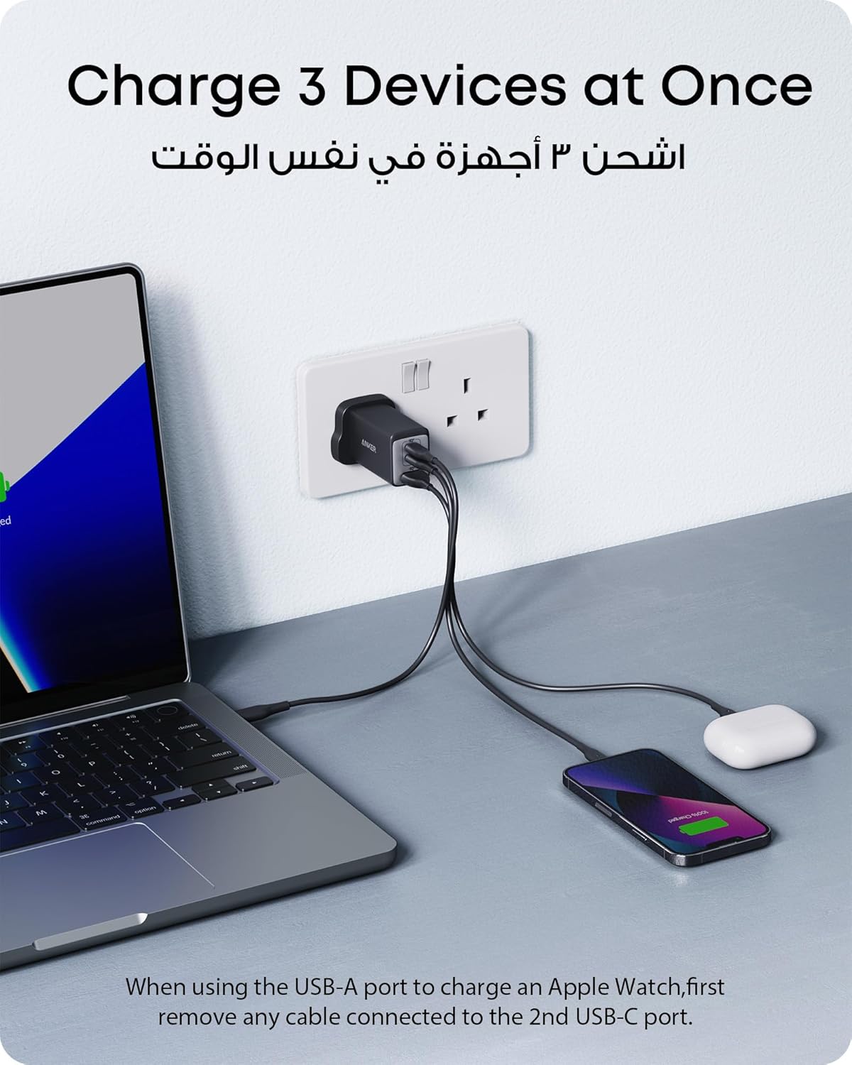 - Compact Design: Power up to 3 devices with a charger that’s roughly the size of an AirPods Pro case.