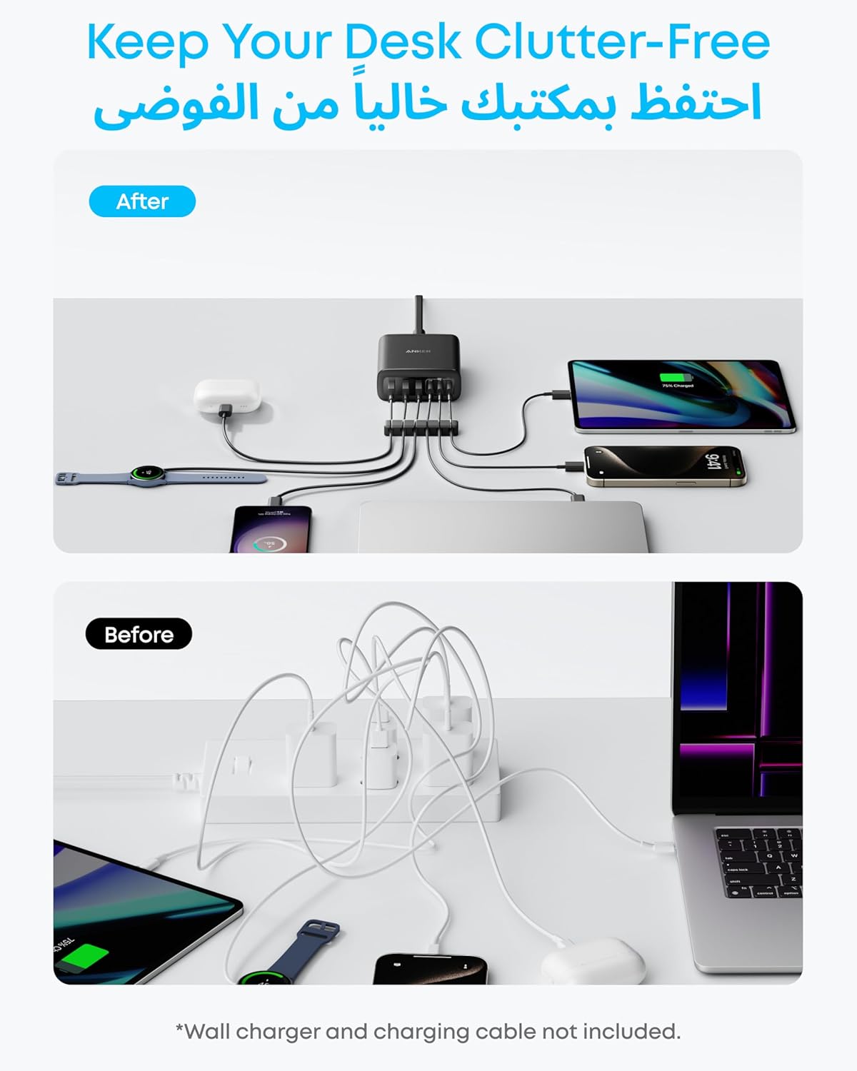 - Tidy Desk, Tidy Mind: Say goodbye to tangled wires and cluttered desks. Included with the charger is a silicone cable organizer, ensuring your workspace remains orderly and stress-free.