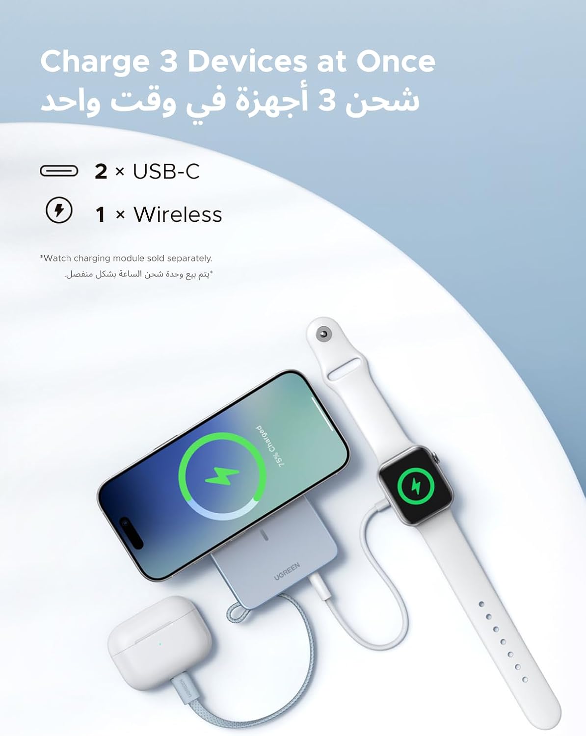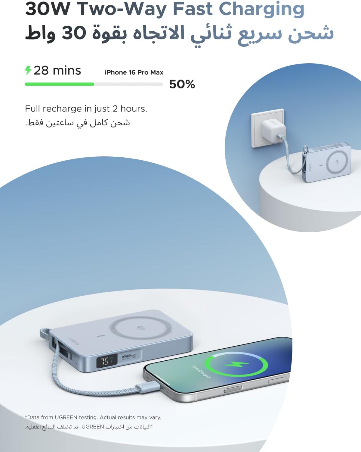 - What You Get: 1 * UGREEN Qi2 25W for iPhone 17 10000mAh Magsafe Power Bank,1*0.5m 60W USB C Cable, 1 * user manual, 24-month warranty, 24-hour customer service, lifetime technical support.