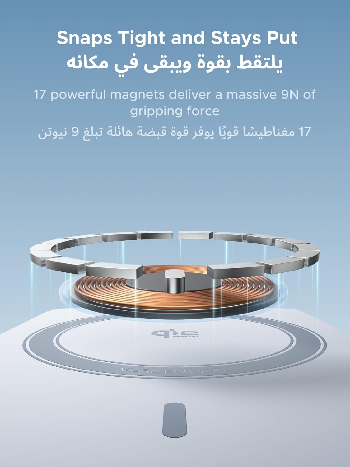 - The First 25W Qi2 Wireless Charger for iPhone 17: Industry-leading Qi2 certified magnetic power bank delivers up to 25W to iPhone 17 Series, charging iPhone 16 Pro Max to 50% in just 38 mins, which is 1/3 faster than 15W, never get slowed down by a low battery.