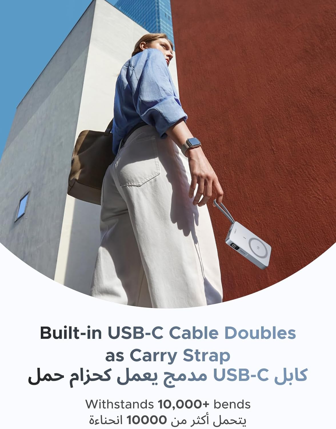 - 30W USB-C Fast Charging: The built-in 30W USB-C cable doesn't just charge your iPhone 16 Pro Max to 50% in 28 mins, or refills the portable charger in 2H, and keeping your 25W power bank secure and your bag neat.