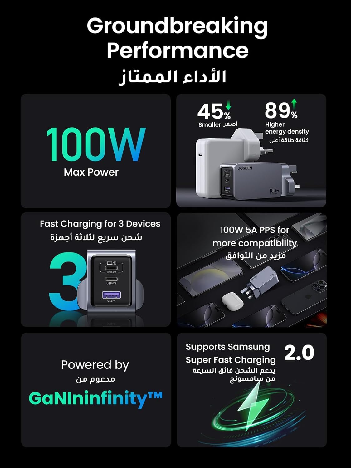 - 【Max 100W Output, Ultra-Fast Charging】