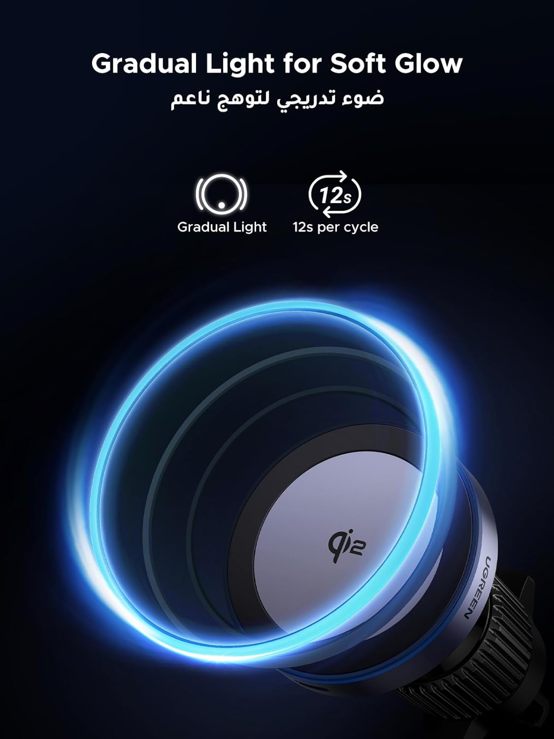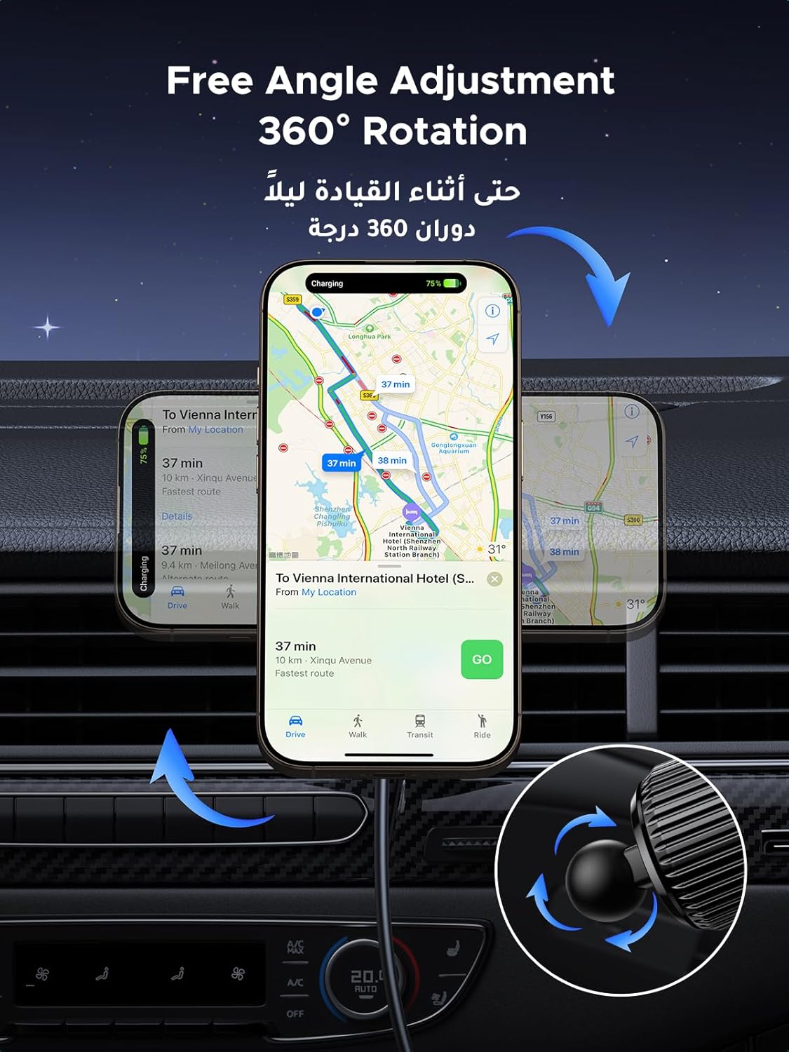 Drive smarter, not harder. Adjust your iPhone wireless charger to portrait/landscape with buttery-smooth rotation. The pulsing LED wireless charger magsafe ring glows blue when charging, green when full, and red for errors – visibility guaranteed in midnight dunes.