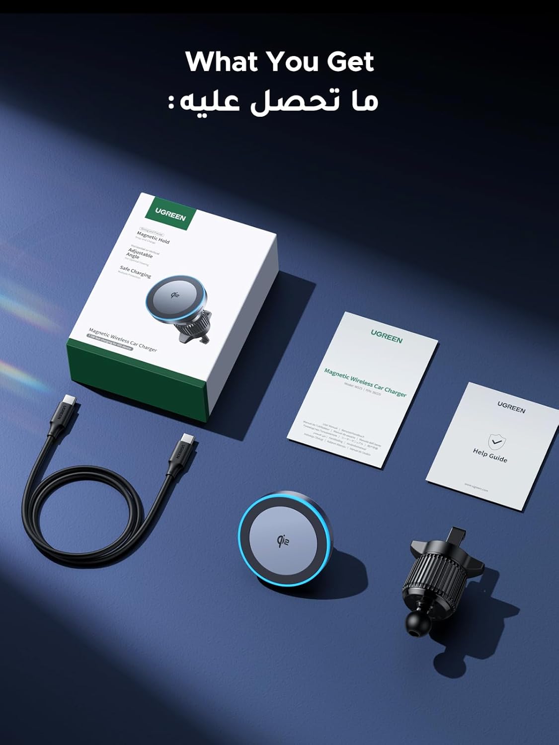 1 * UGREEN Magsafe Wireless Car Charger, 1 * 1M USB C Cable, 1 * user manual, 24-month warranty, 24-hour customer service, lifetime technical support.