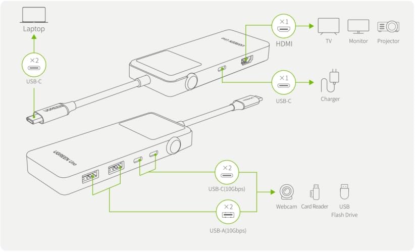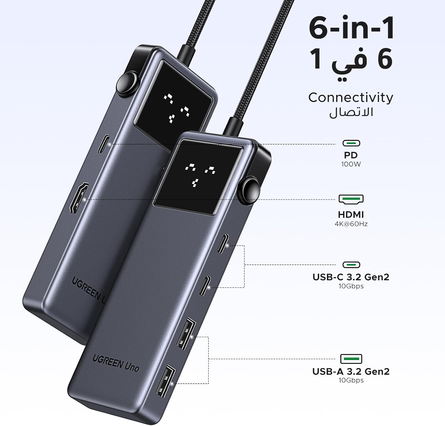 - Intelligent Robot Design: 6-in-1 Uno usb c hub features four smart status emojis. Unleash more potential from your laptop's USB-C port with two 10 Gbps USB-C 3.2 Gen 2 ports, two 10 Gbps USB-A 3.2 Gen 2 ports, 4K@60Hz HDMI, PD100W.