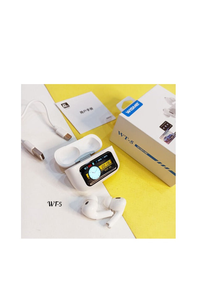 Wisme WT5 Earbuds featuring touch-sensitive controls, wireless Bluetooth technology, and a sleek AirPods-style design